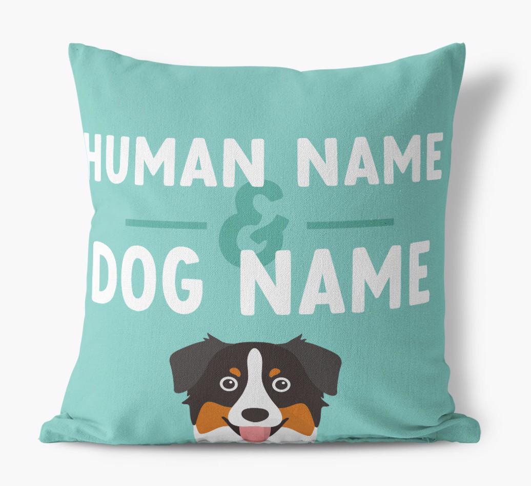 Human And Pet Name: Personalized Australian Shepherd Canvas Pillow