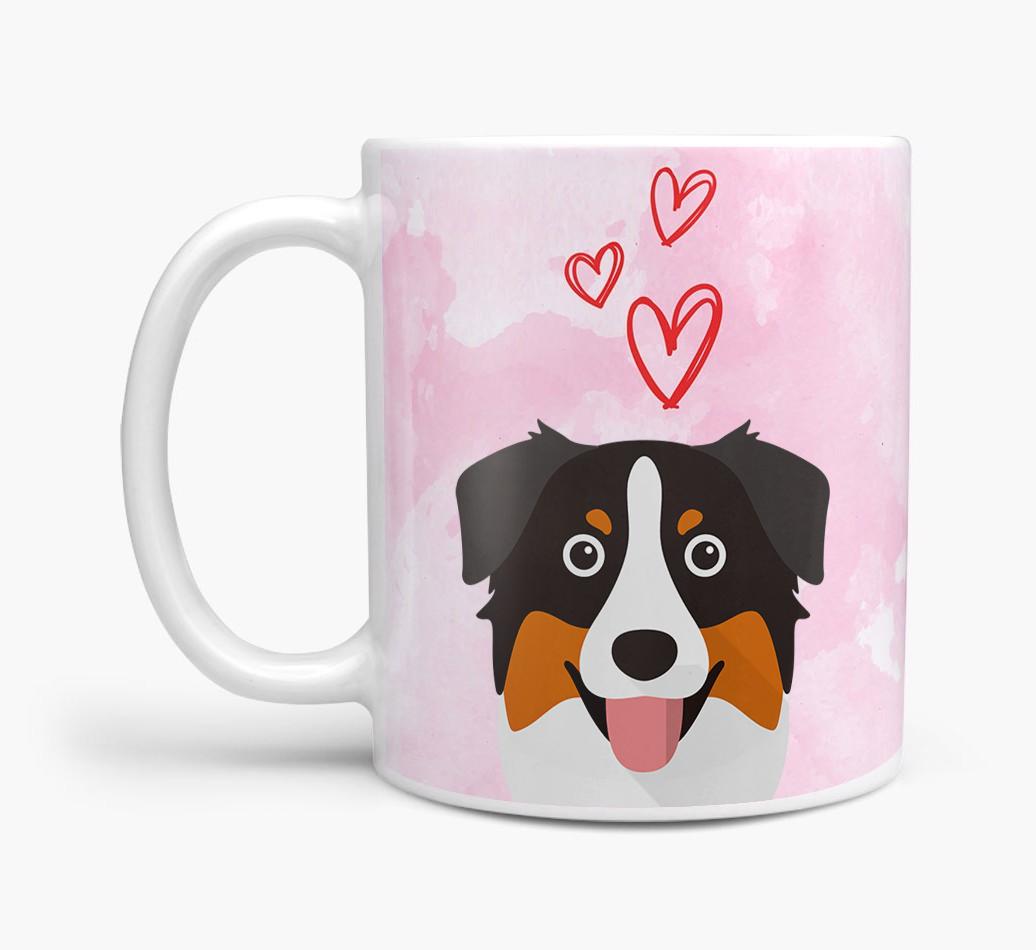 Peeking Dog & Hearts: Personalized Australian Shepherd Mug