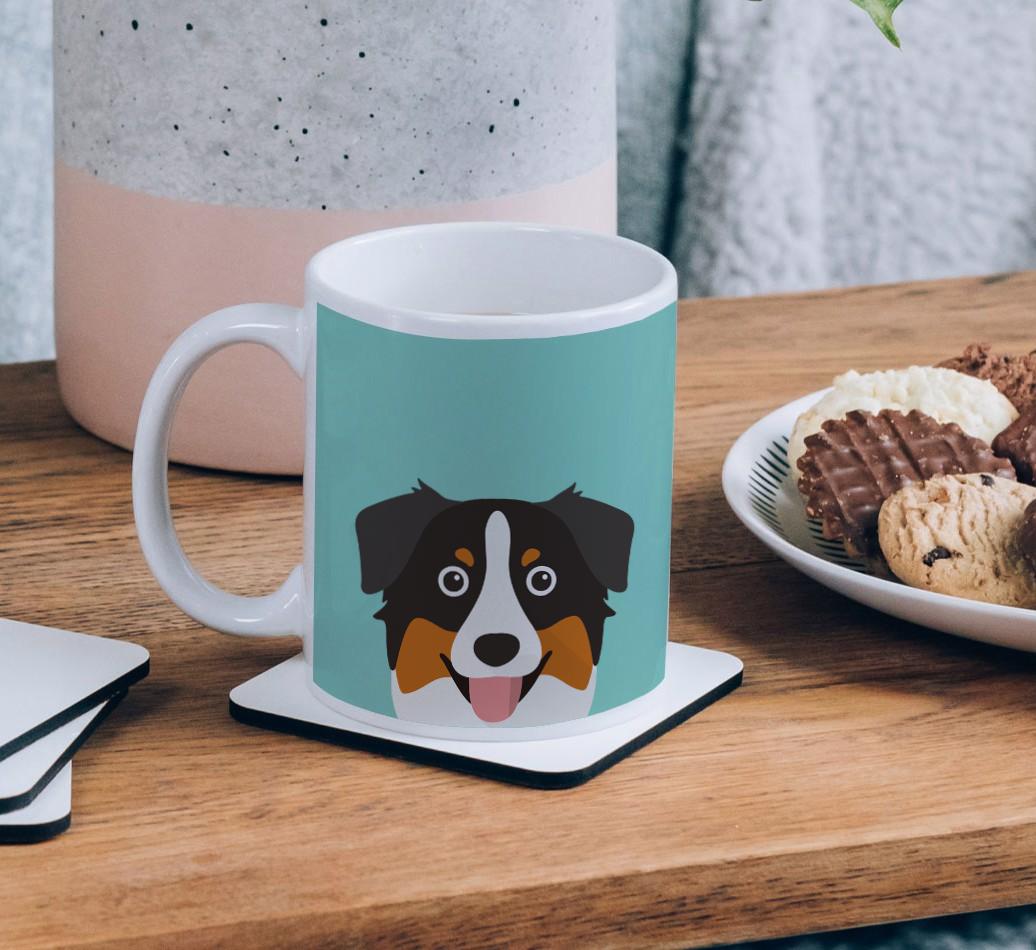 Enjoy the perfect coffee break with a mug that stars your furry friend! Featuring a Yappy.com exclusive Aussie Shepherd peeking icon, this pawgeous mug will look at home in any dog lover's kitchen and we're pretty sure Australian Shepherd will be a fan too.