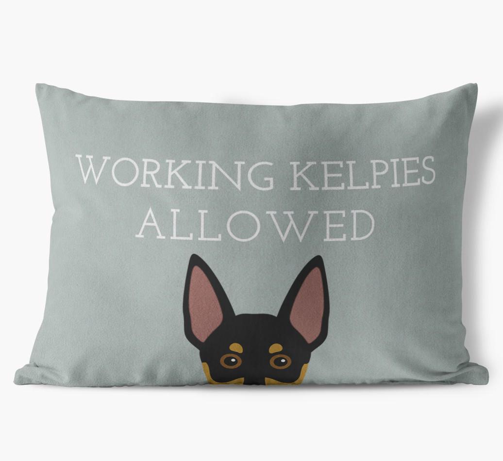 This exclusive, luxurious pillow is printed with the words ‘Working Kelpies Allowed’, which I’m sure Your Working Kelpie would definitely approve of.