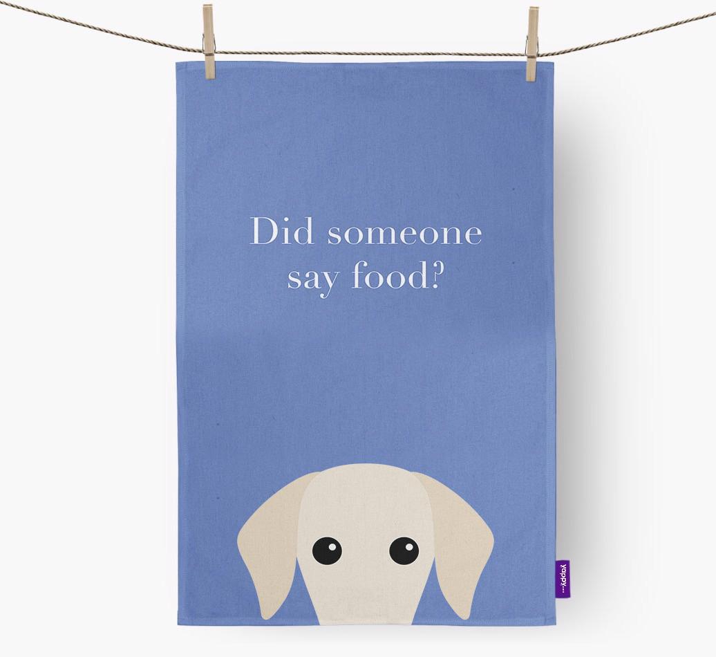 Printed with the question, ‘Did someone say food?’, this dish towel knows exactly what’s on Your Azawakh’s mind.