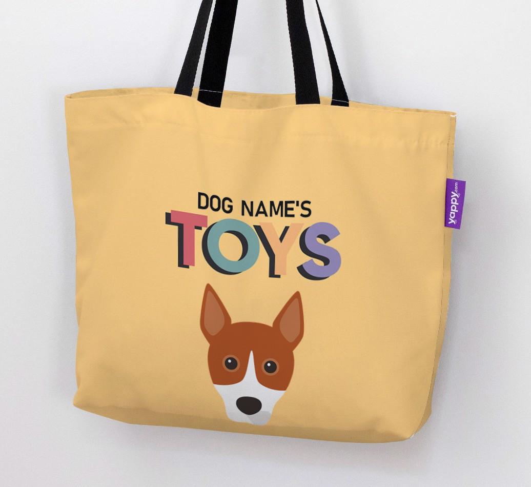 Don’t worry, we’ve got you covered with this pawsonalized canvas bag made for your Basenji’s toy collection!