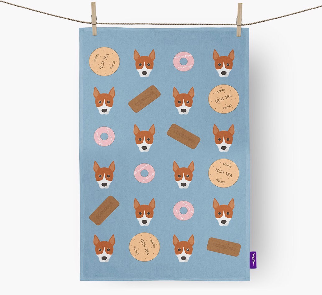 This woofly dish towel features Basenji icons amongst some of our most loved cookies, it is available in four different colors and is sure to make you smile every time you see it.