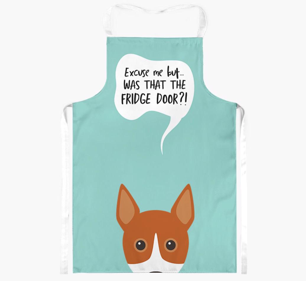 Featuring your hungry hound's cheeky icon and available in five eye-catching colors, this apron is a must-have for parents of greedy pups!