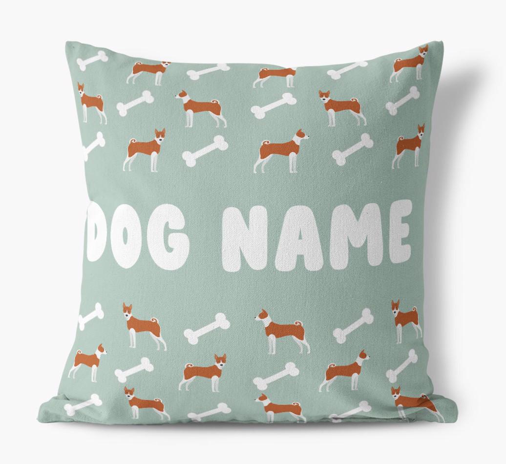 Personalized with Basenji’s name against a background of Basenji icons and bones, this gorgeous pillow is full of pawsonality.