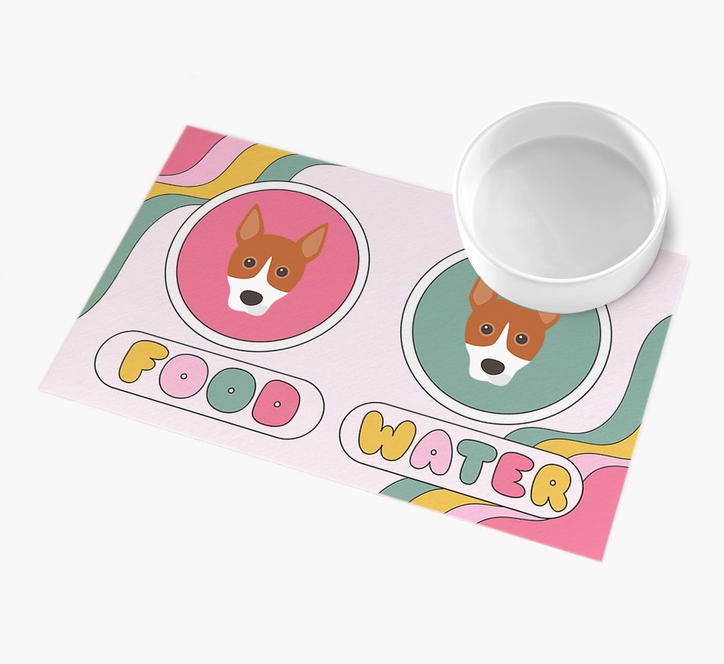 With a swirl of pastel colors and the addition of cute Basenji icons, this feeding mat is a stylish place to sit Basenji’s food and water bowls!