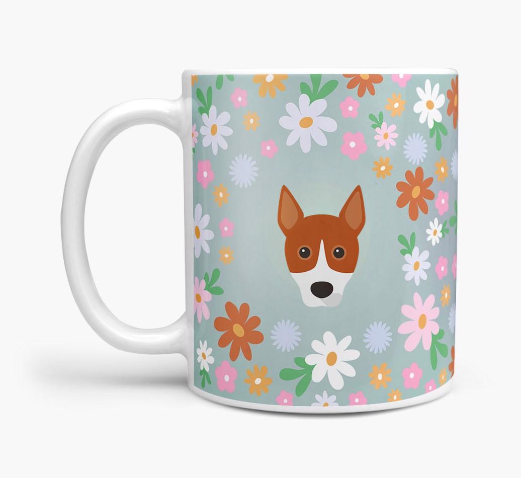 Featuring a colorful bunch of flowers, this mug is printed with the words 'woofly grandma' on one side of the mug and your Basenji's cute icon on the other. Bloomin' lovely!