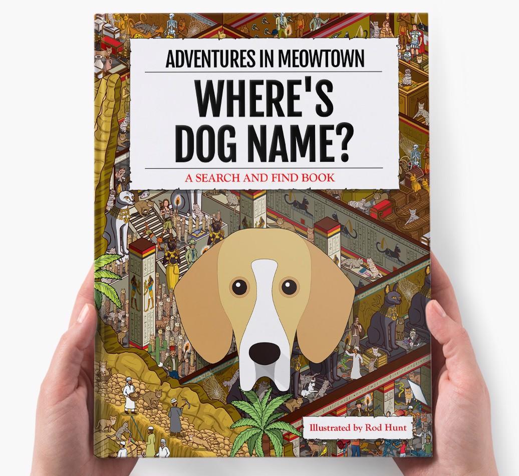 Get ready to unleash your inner detective with our popular Search & Find book, ‘Where’s (insert dog name)?’ It’s the personalized dog book everyone’s yapping about! With twelve beautifully illustrated locations to explore, we challenge you to find your adventurous {breedShortName} on each action-packed page. Can you spot all the canine cameos and funny parodies too?
