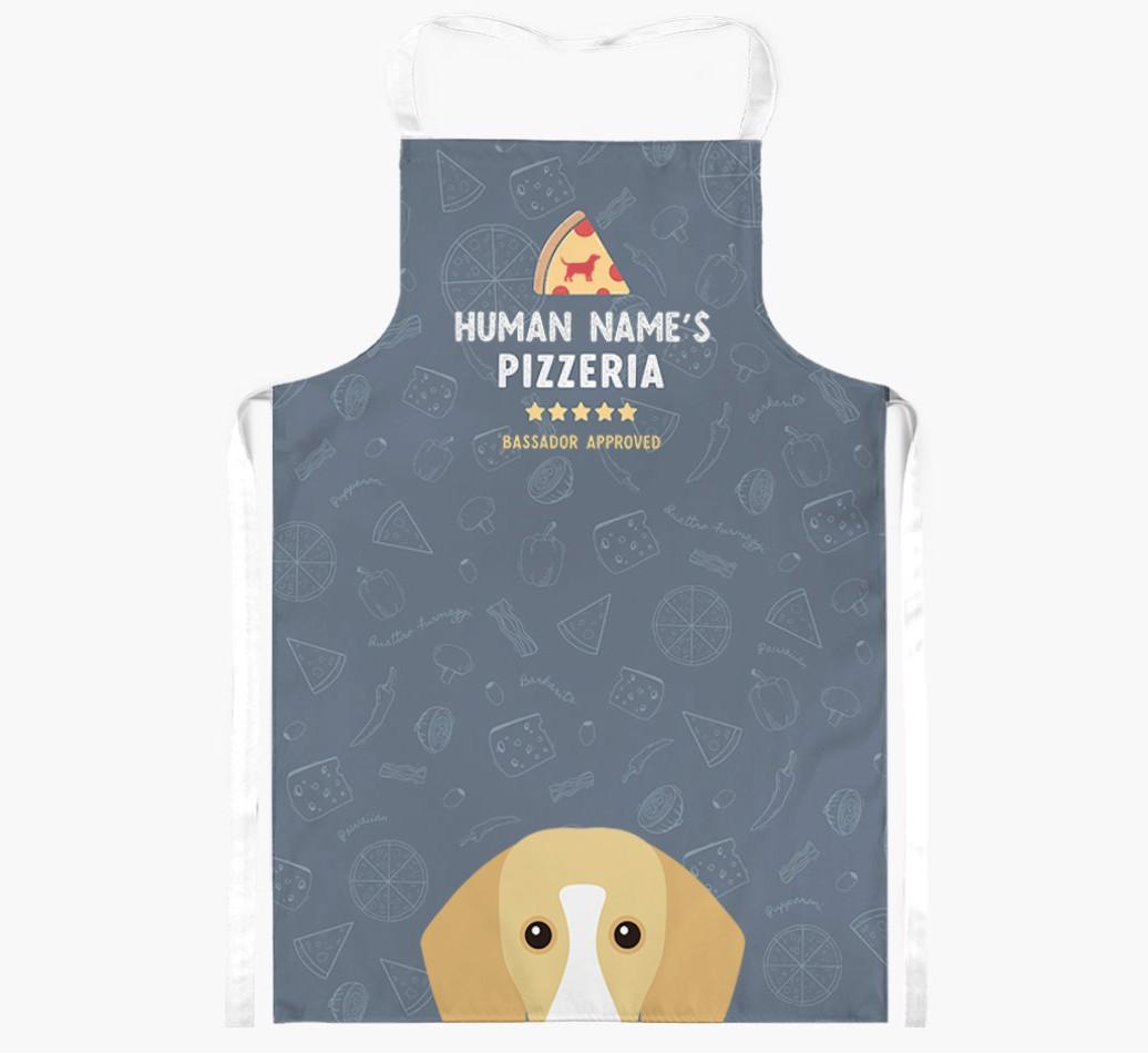 Featuring your furry friend's icon and lick of approval, plus your chosen human name, this apron is pawfect for anyone who considers themselves a pizza maestro in the kitchen. Available in a choice of 5 rustic colors, it'll make any Bassador lover happy.