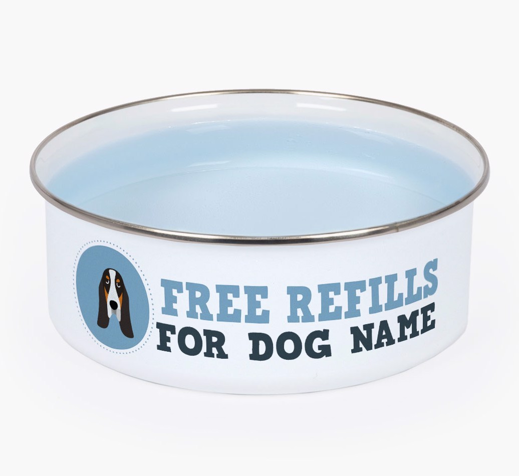 Free Refills: Personalized Enamel Basset Bleu De Gascogne Bowl