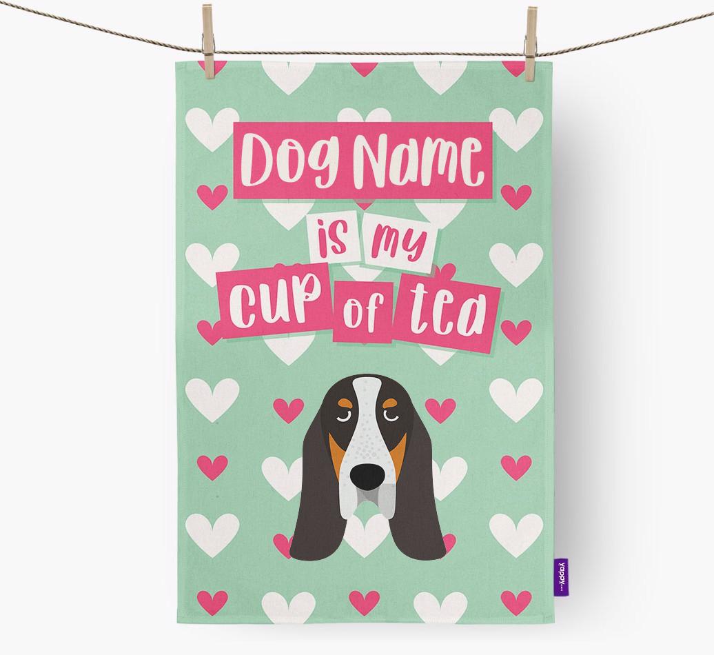 'Basset Bleu De Gascogne Is My Cup of Tea' - Personalized Basset Bleu De Gascogne Dish Towel