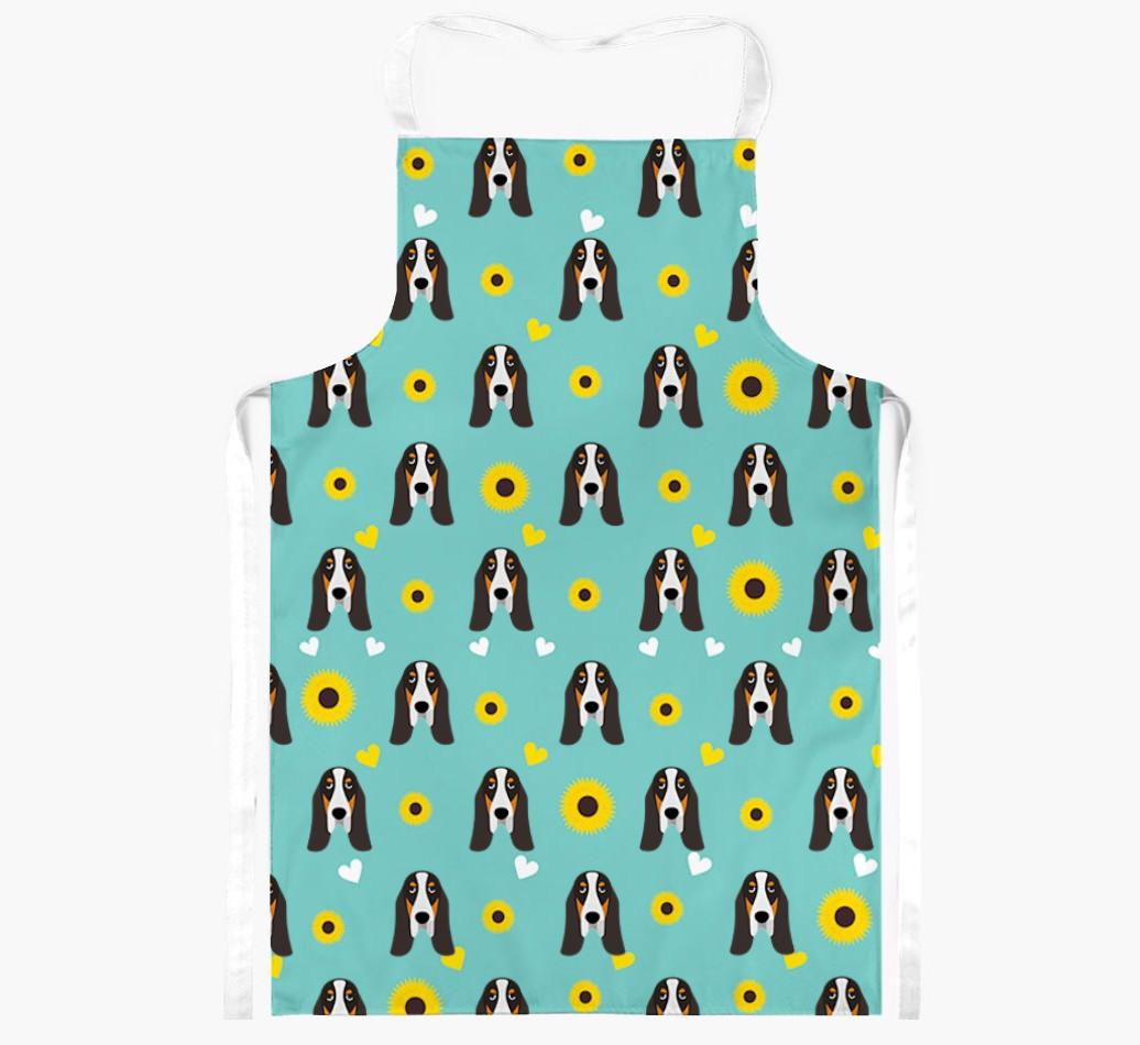 This apron has a delightful sunflower and heart pattern, and best of all - it's personalized with Basset Bleu De Gascogne's face too! This cute and colorful apron is sure to put a smile on every dog lover's face.