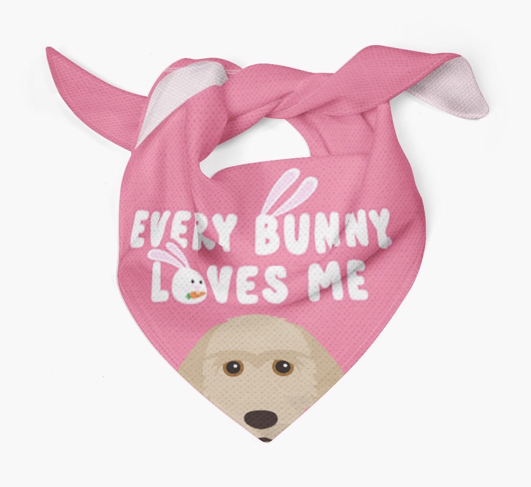 Tailored with the fabulous saying: 'Every Bunny Loves Me', this bandana is the perfect addition to your Basset Fauve De Bretagne's wardrobe! Available in four egg-ceptional colors and personalized with your Basset Fauve De Bretagne's icon, this is the perfect pawchase for Easter!