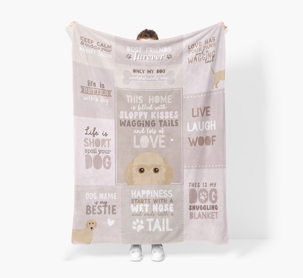Made from luxuriously soft sherpa fleece material, this blanket is guaranteed to keep you cosy and snug, pawfect night with Basset Fauve De Bretagne.