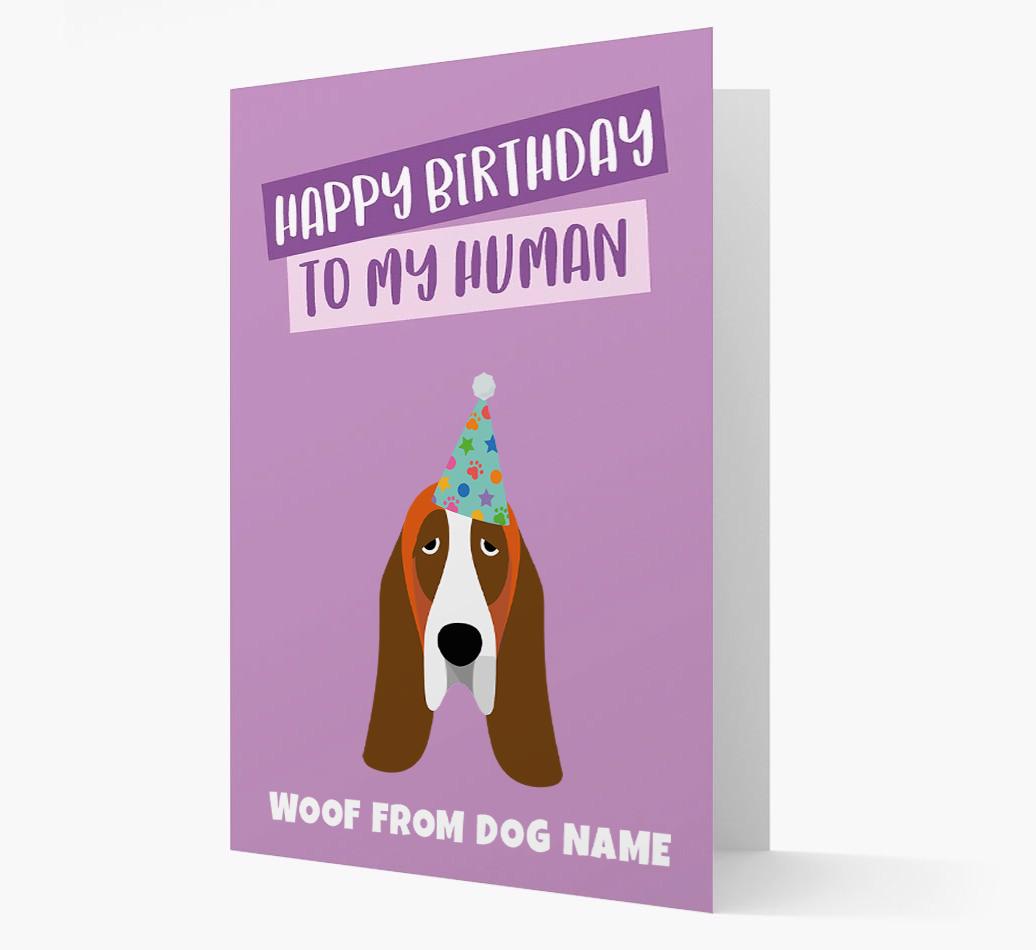 'Happy Birthday to My Human' - Personalized Basset Hound Card