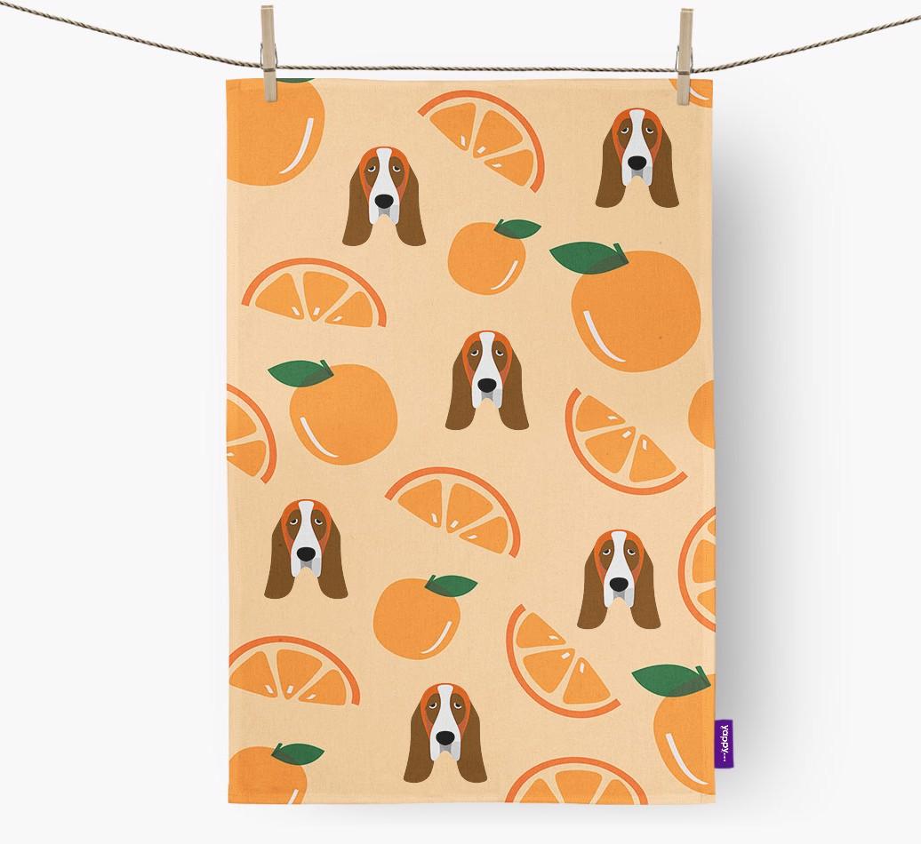 'Fruit Pattern' - Personalized Basset Hound Dish Towel (Various Patterns)