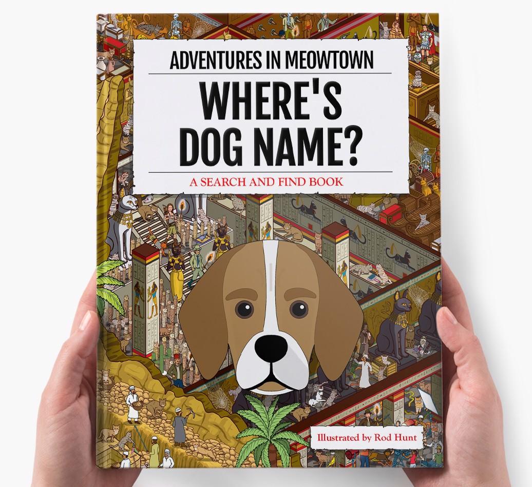 Get ready to unleash your inner detective with our popular Search & Find book, ‘Where’s (insert dog name)?’ It’s the personalized dog book everyone’s yapping about! With twelve beautifully illustrated locations to explore, we challenge you to find your adventurous {breedShortName} on each action-packed page. Can you spot all the canine cameos and funny parodies too?