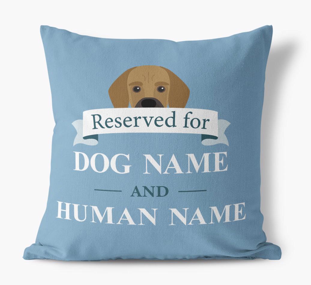 Personalized with your Bassugg's icon and available in five rustic colors, this pillow will reserve you and your furry friend a place on the sofa whilst reminding everyone of your un-barkable bond!