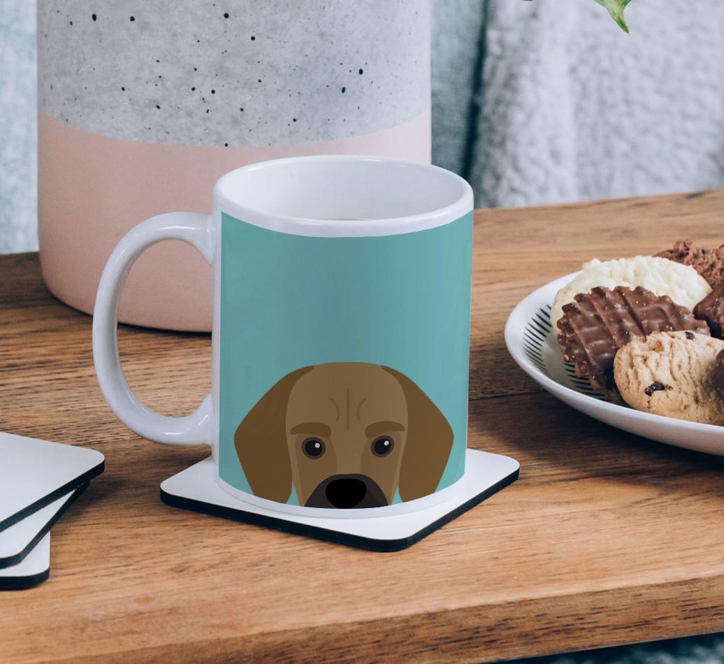 Enjoy the perfect coffee break with a mug that stars your furry friend! Featuring a Yappy.com exclusive Bassugg peeking icon, this pawgeous mug will look at home in any dog lover's kitchen and we're pretty sure Bassugg will be a fan too.
