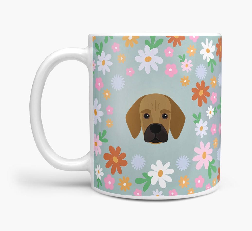 Featuring a colorful bunch of flowers, this mug is printed with the words 'woofly grandma' on one side of the mug and your Bassugg's cute icon on the other. Bloomin' lovely!