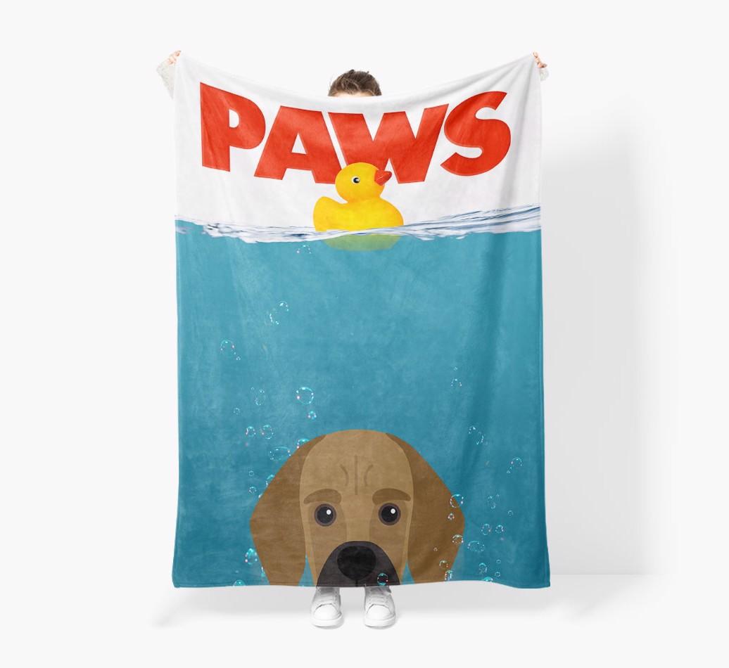 Bursting onto the scene is our PAWS blanket, starring Bassugg!
