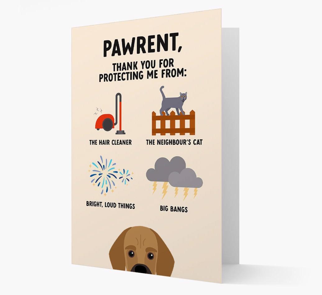 Featuring your Bassuggs Yappicon and a furbulous Yappy.com design, this card is sure to let Your Bassugg's pawrent know that they feel protected from big bangs and frightening felines.