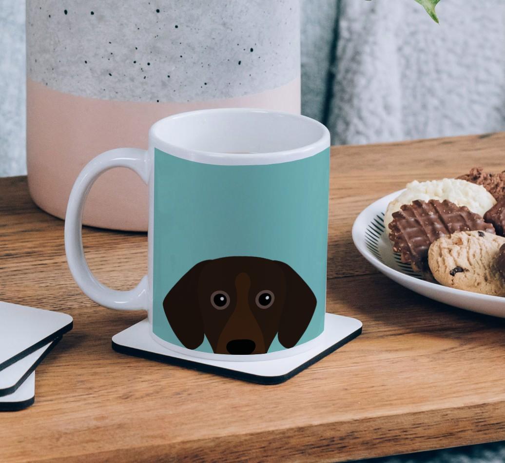 Enjoy the perfect coffee break with a mug that stars your furry friend! Featuring a Yappy.com exclusive Mountain Hound peeking icon, this pawgeous mug will look at home in any dog lover's kitchen and we're pretty sure Bavarian Mountain Hound will be a fan too.