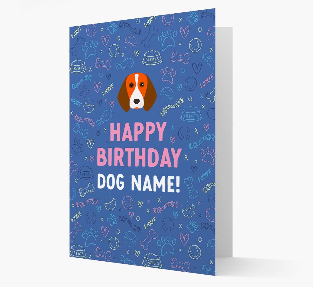 Personalized with your Beagle's name and icon and available in four pawgeous colors, this card is bound to make your Beagle tail-waggingly happy on their special day.