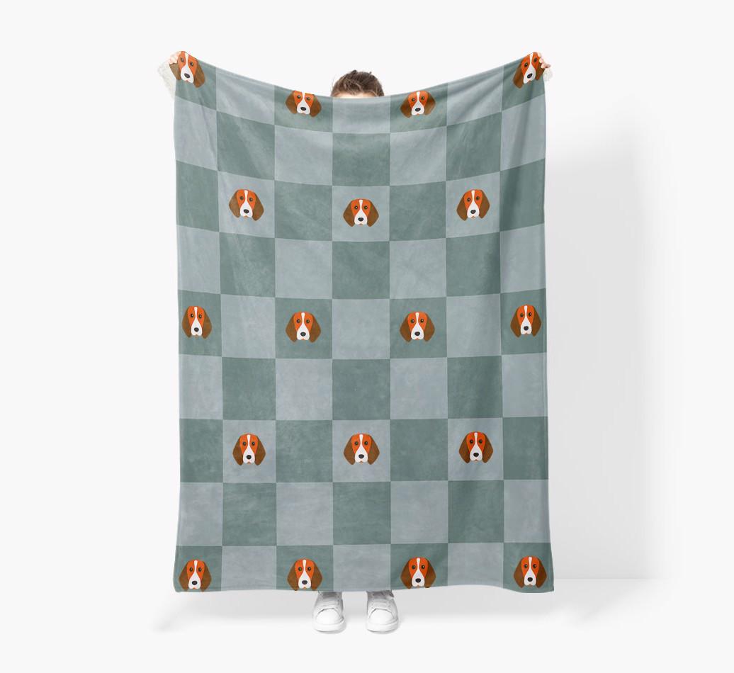'Checkboard' - Personalized Beagle Blanket: Premium Sherpa Fleece