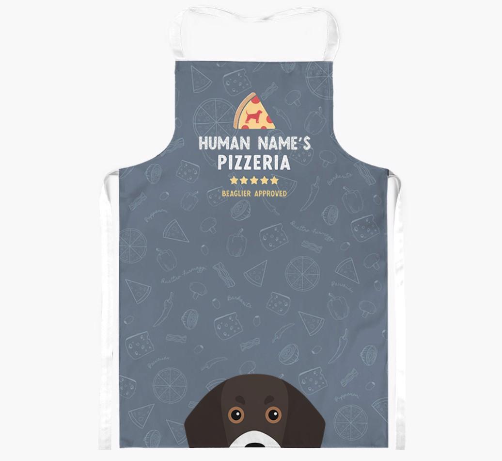 Featuring your furry friend's icon and lick of approval, plus your chosen human name, this apron is pawfect for anyone who considers themselves a pizza maestro in the kitchen. Available in a choice of 5 rustic colors, it'll make any Beaglier lover happy.