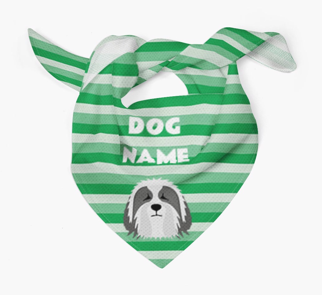Well, now you can make sure your Bearded Collie’s name is on everyone’s lips with this personalized bandana.