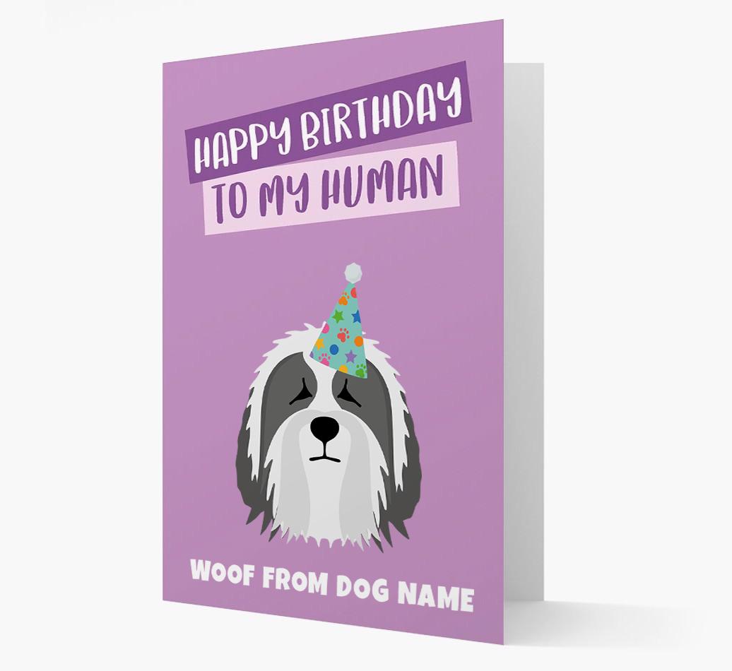 'Happy Birthday to My Human' - Personalized Bearded Collie Card