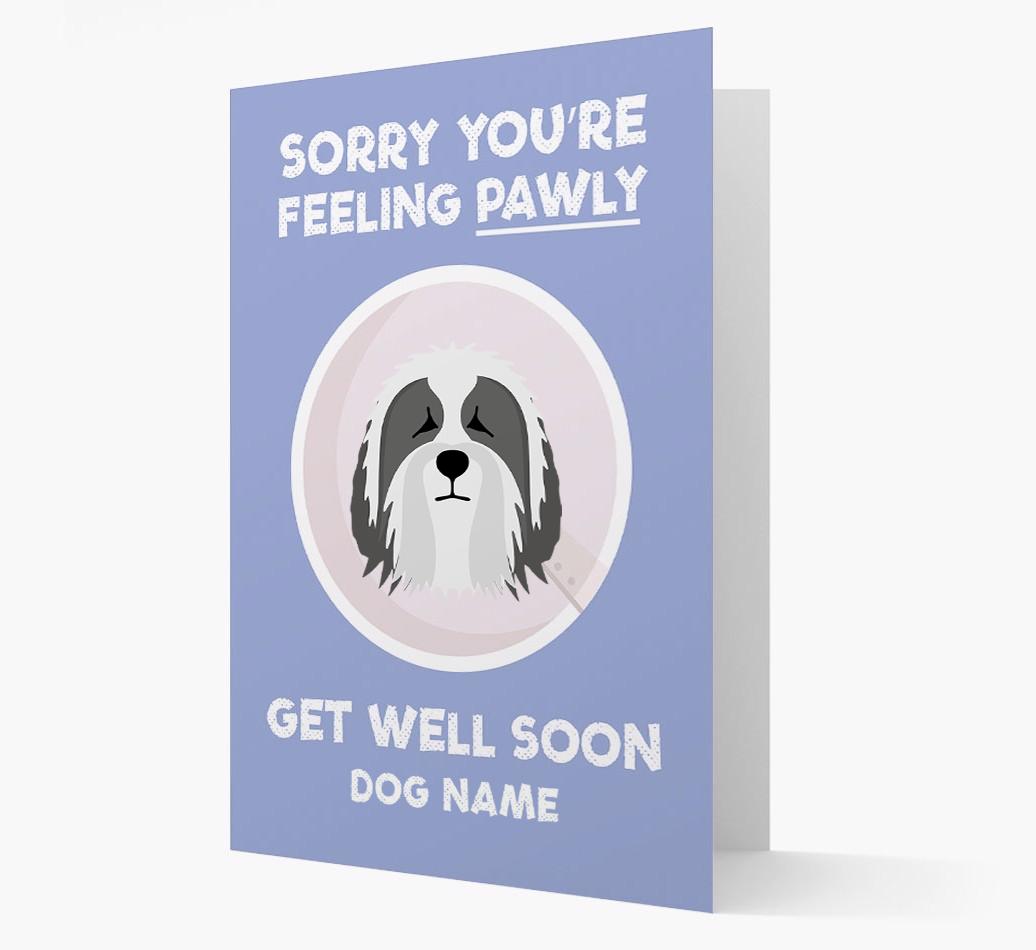 'Sorry You're Feeling Pawly' - Personalized Bearded Collie Get Well Soon Card