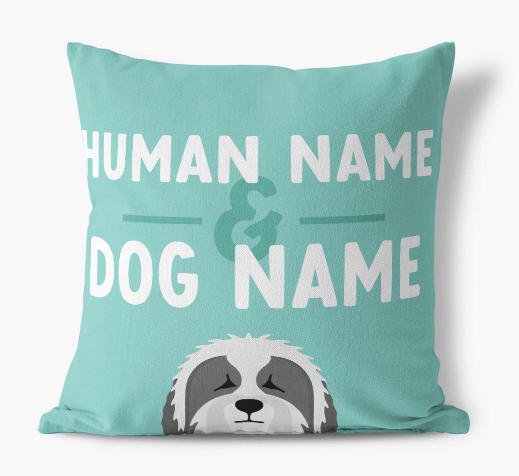 Human And Pet Name: Personalized Bearded Collie Canvas Pillow