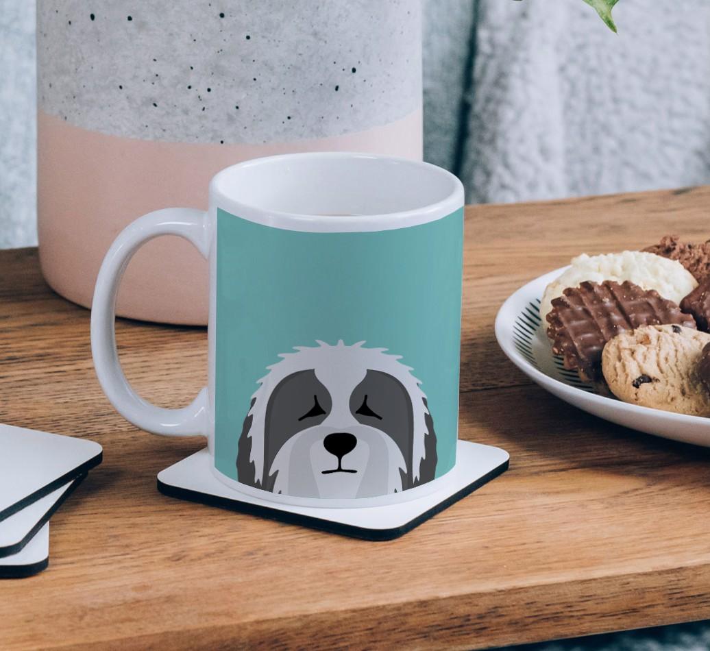 Enjoy the perfect coffee break with a mug that stars your furry friend! Featuring a Yappy.com exclusive Bearded Collie peeking icon, this pawgeous mug will look at home in any dog lover's kitchen and we're pretty sure Bearded Collie will be a fan too.