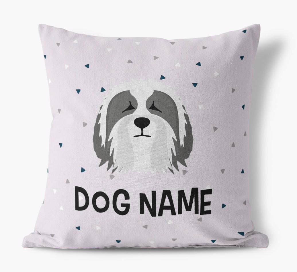 Triangle Pattern with Bearded Collie's Icon: Personalized Canvas Pillow