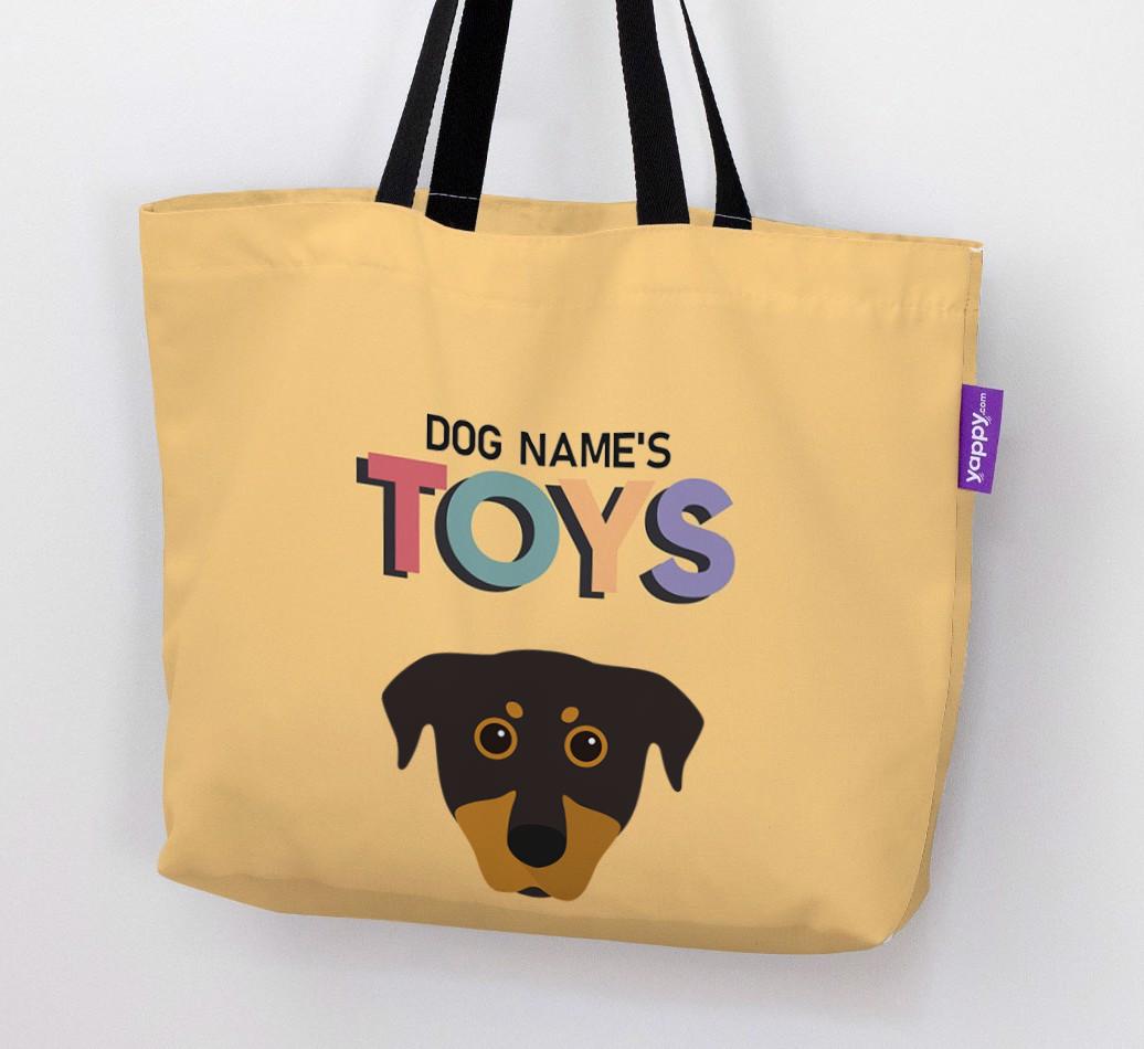 Don’t worry, we’ve got you covered with this pawsonalized canvas bag made for your Beauceron’s toy collection!