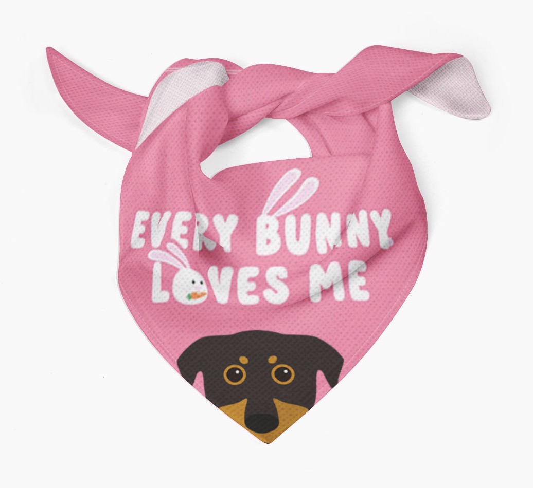 Tailored with the fabulous saying: 'Every Bunny Loves Me', this bandana is the perfect addition to your Beauceron's wardrobe! Available in four egg-ceptional colors and personalized with your Beauceron's icon, this is the perfect pawchase for Easter!