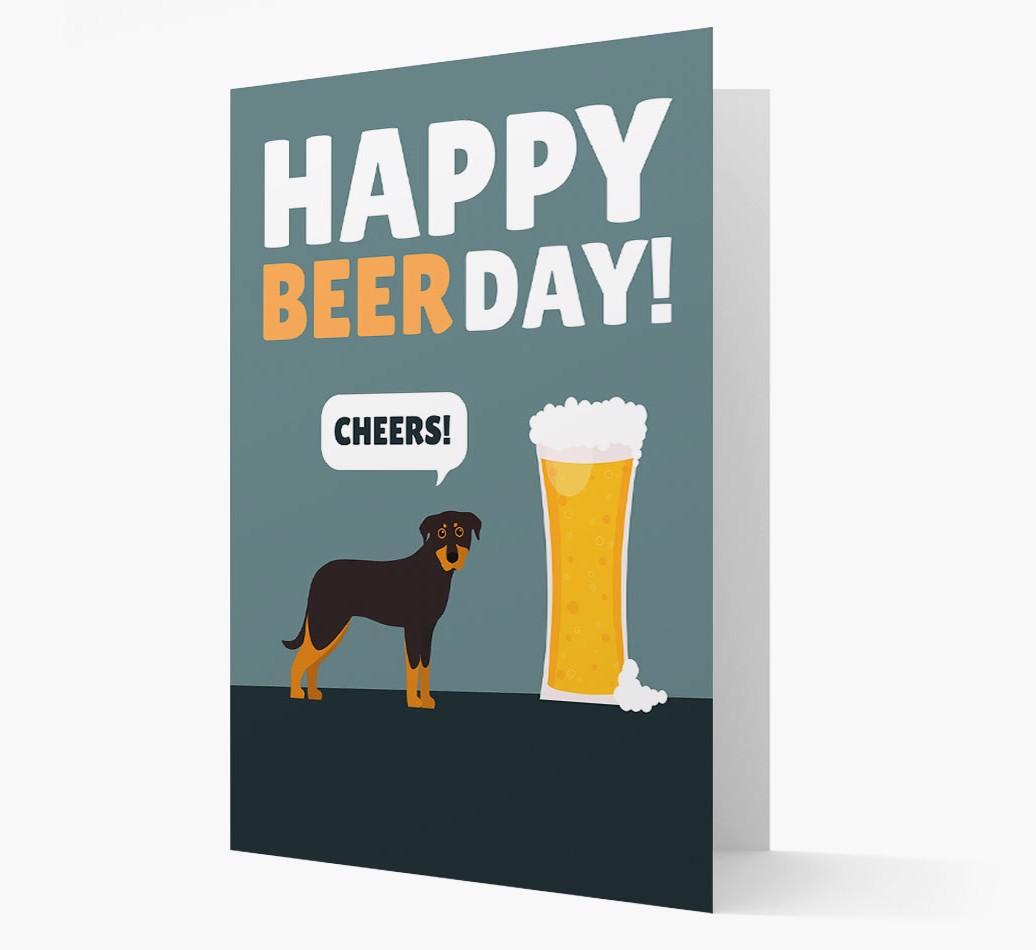 Featuring a tall frothy beer and Beauceron exclaiming cheers! this card is a wagnificent way to celebrate in style.