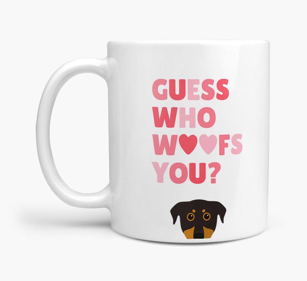Personalized with Beauceron's cute face, this adorable mug is perfect for showing off the one who "woofs" you - how sweet!