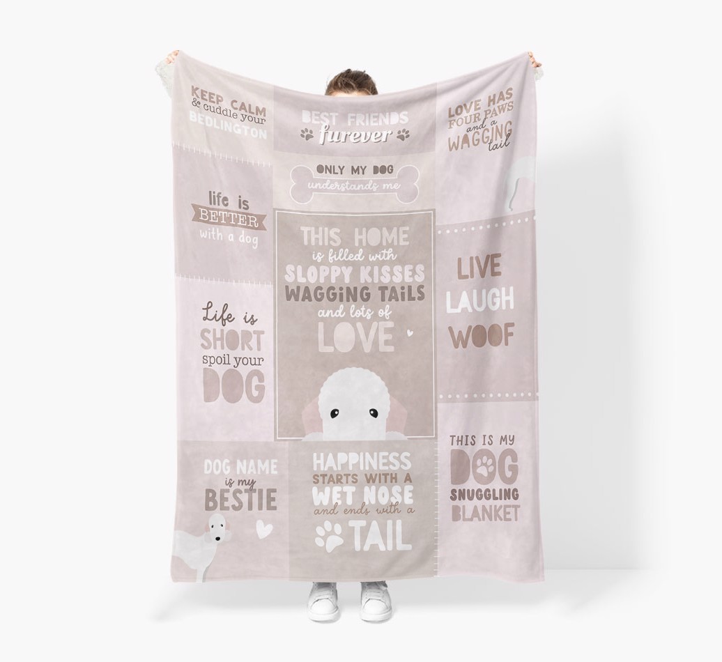 Filled with pawgeous quotes about your furry friend, this blanket is the perfect way to make naptimes with your Bedlington the coziest ever.