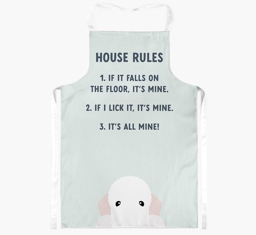 A fun way to show off your greedy pup, this stylish apron is personalized with your furry friend's icon and features their rules when it comes to food.