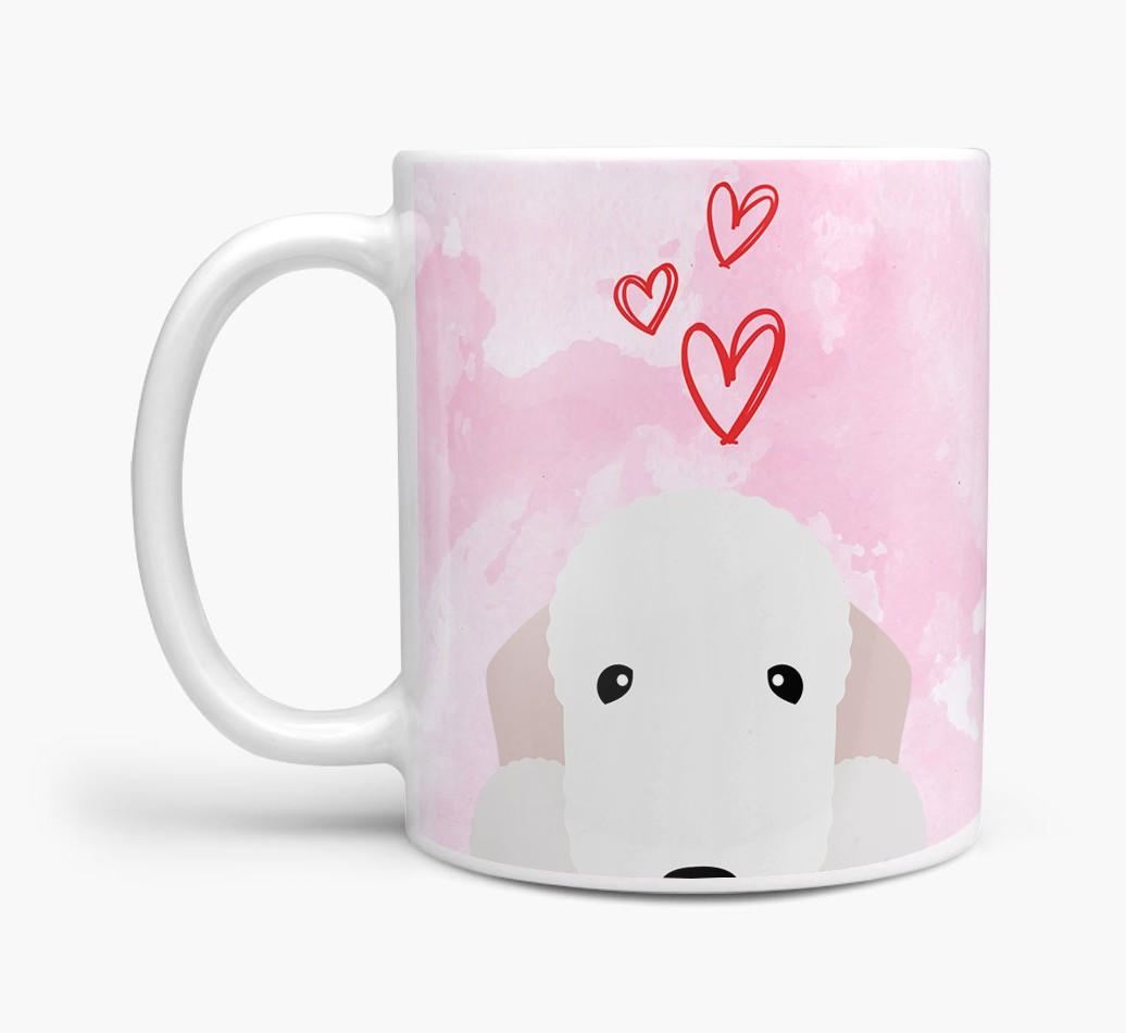 Peeking Dog & Hearts: Personalized Bedlington Terrier Mug