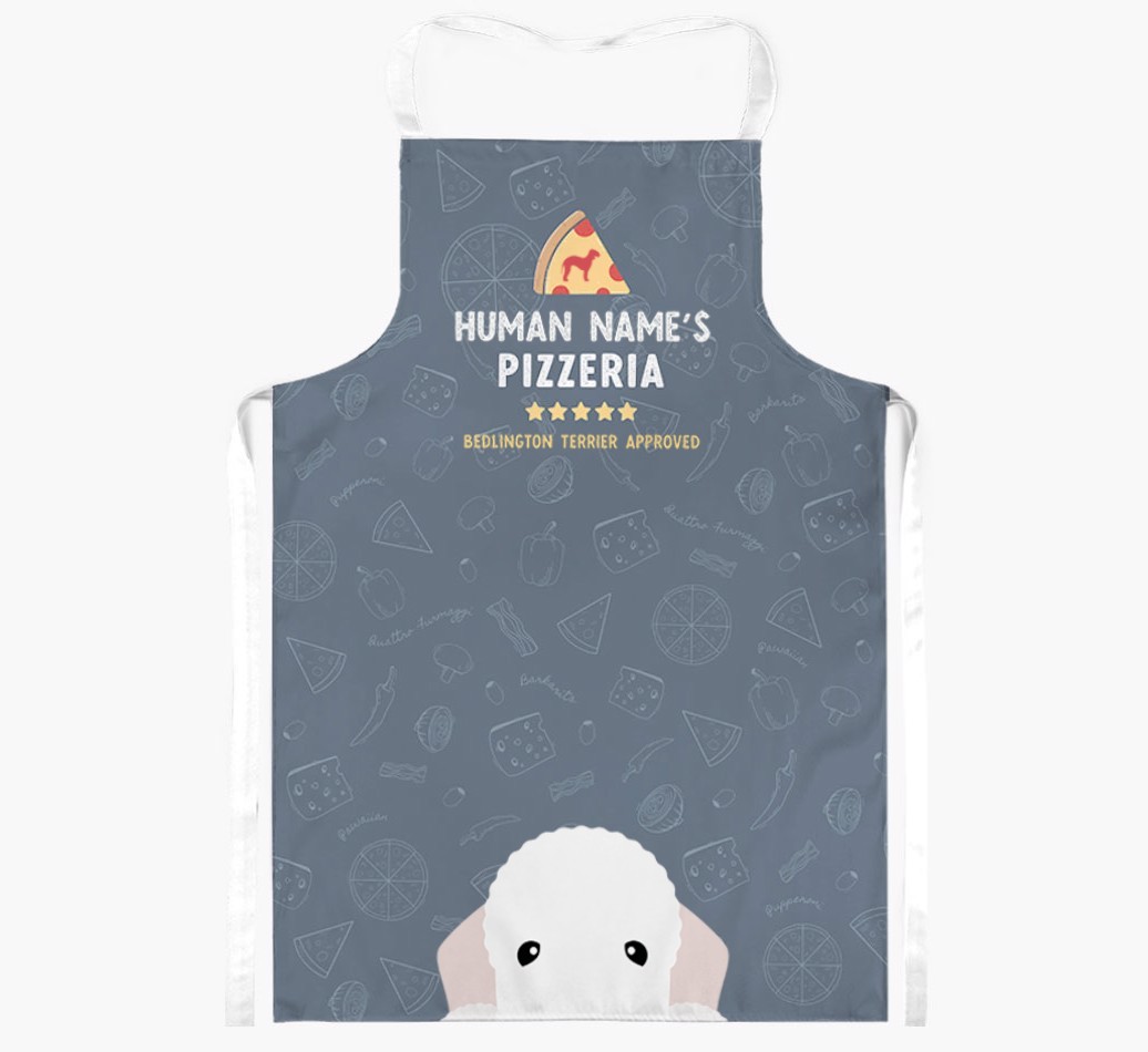 Featuring your furry friend's icon and lick of approval, plus your chosen human name, this apron is pawfect for anyone who considers themselves a pizza maestro in the kitchen. Available in a choice of 5 rustic colors, it'll make any Bedlington lover happy.