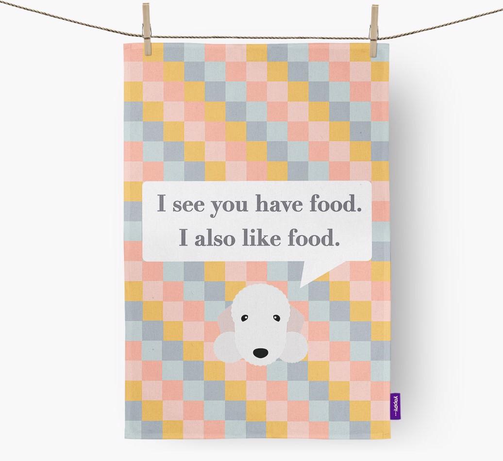 If your Bedlington Terrier is a full time snack machine, this dish towel may be the ideal way to warn your guests.