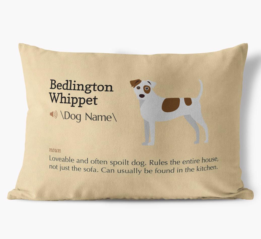 Personalized just for Your Bedlington Whippet and featuring a unique Bedlington Whippet definition and silhouette, this pillow truly is like no other.