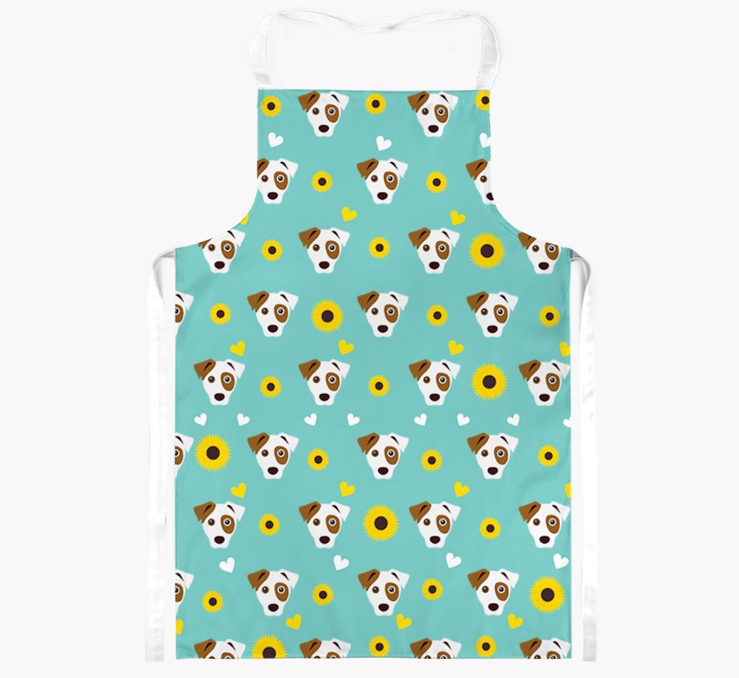 This apron has a delightful sunflower and heart pattern, and best of all - it's personalized with Bedlington Whippet's face too! This cute and colorful apron is sure to put a smile on every dog lover's face.