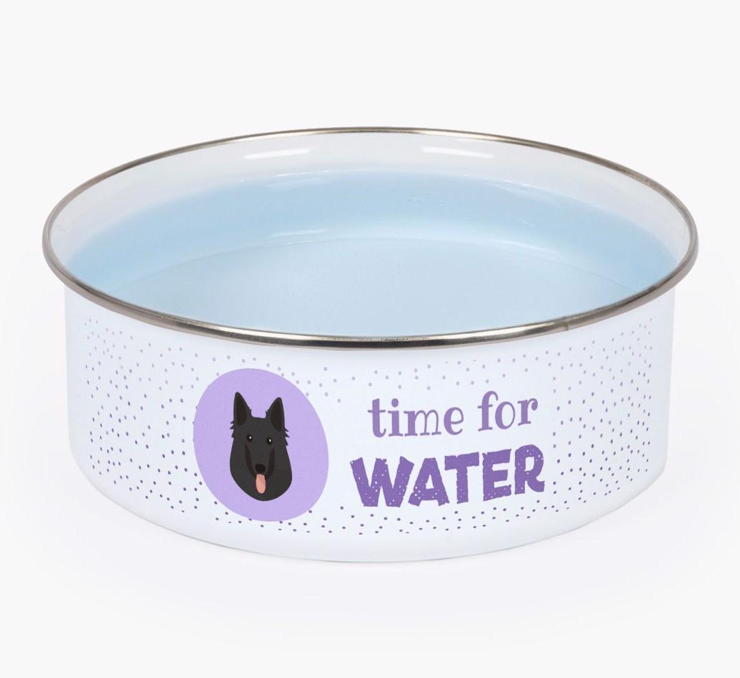 Time For Water: Personalized Enamel Belgian Groenendael Bowl