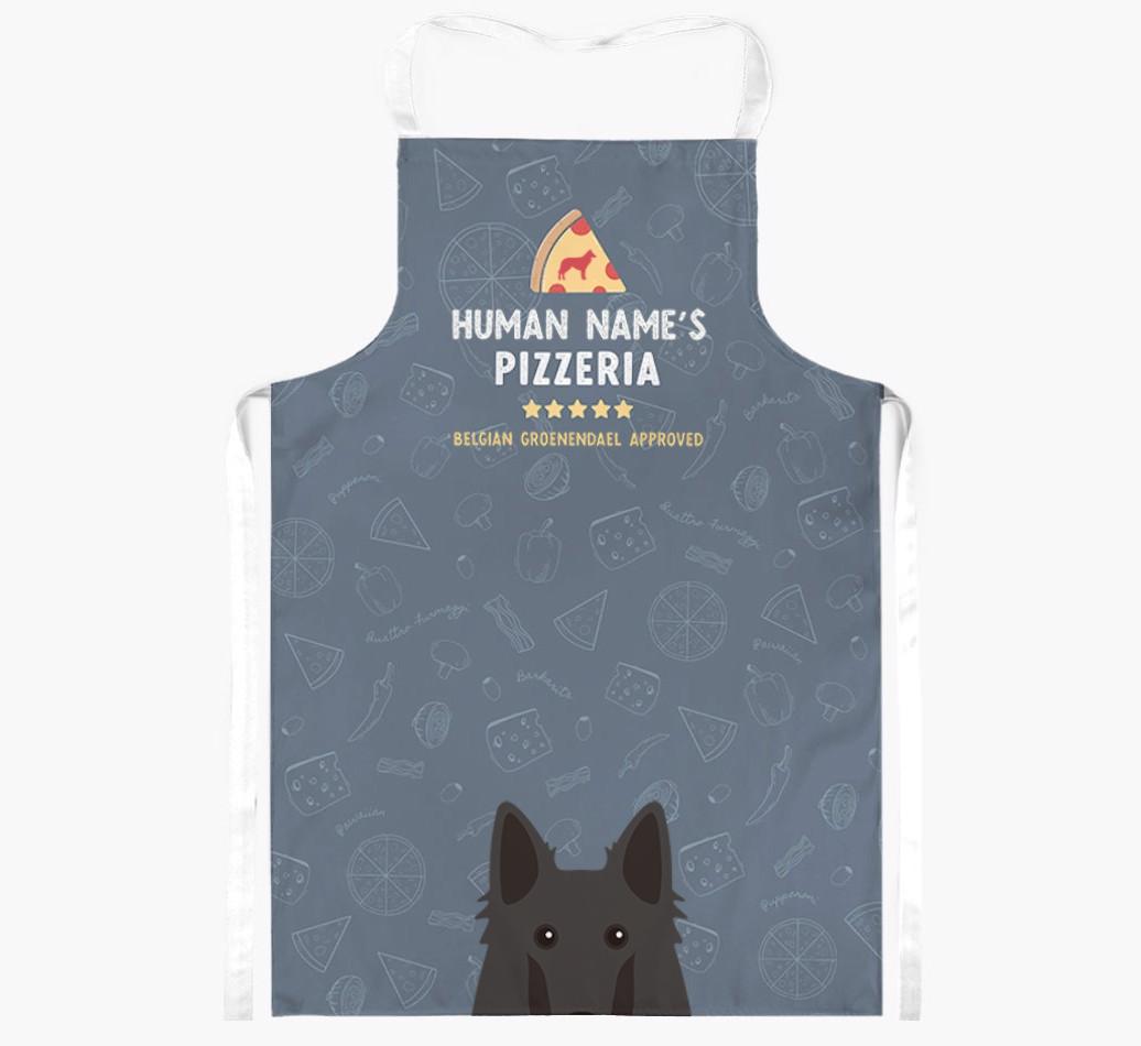 Featuring your furry friend's icon and lick of approval, plus your chosen human name, this apron is pawfect for anyone who considers themselves a pizza maestro in the kitchen. Available in a choice of 5 rustic colors, it'll make any Belgian lover happy.