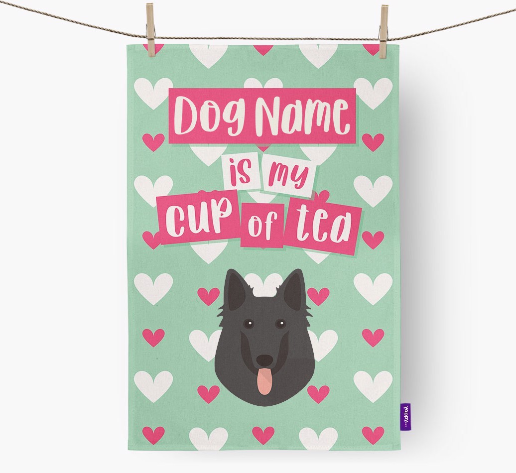 'Belgian Groenendael Is My Cup of Tea' - Personalized Belgian Groenendael Dish Towel
